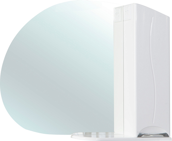 Зеркало-шкаф Глория 105 R белый является привлекательным и удобным  предметом меблировки ванной комнаты. В качестве главных украшений изделия выступают креативные формы зеркального полотна и распашного шкафа. Такие дугообразные элементы делают шкаф непохожим на другие, и стильно декорируют помещение.