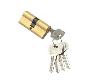 Цилиндровый механизм из ЦАМ с 5 английскими ключами. Ключи из стали. 5 пинов, цилиндр ключ-ключ, размер 70мм (35*35).