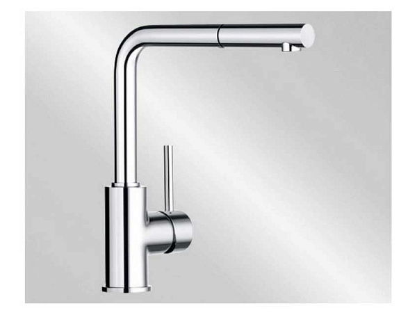 Смеситель Mila-S 524214 немецкой компании Blanco зарекомендовал себя как функциональное кухонное оборудование. Модель в индустриальном стиле займет центральное место в интерьере кухни. Технические преимущества смесителя не уступают его эстетике. Изделие изготовлено из латуни с плотным слоем хромирования. Поверхность корпуса защищена от коррозии, царапин и распространения бактерий. Дисковый керамический картридж обеспечивает долголетнюю интенсивную работу устройства. Рычаг управления имеет удобный захват и плавный ход. Высокий поворотный L -образный кран с выдвижным изливом позволяет быстрее и качественнее мыть посуду, затрачивая при этом меньше времени.  Выдвижная трубка в нейлоновой оплетке не подвержена протечкам. Интегрированный в излив аэратор с рассекателем препятствует образованию известкового налета. Оборудование устанавливается в отверстие диаметром 35 мм.