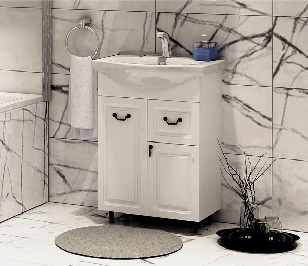 Тумба с раковиной COROZO "Элегия Ретро 60 Z1" (SD-00000010+1WH110268 белый)