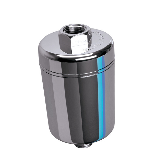 Фильтр Т5 от российской компании «Новая Вода» устанавливают перед душевой лейкой или душевым шлангом. Простой монтаж не займет много времени и не потребует специальных навыков. Он совместим с любым типом современной душевой системы благодаря удлинителю-переходнику (входит в комплект). Картридж из медно-цинкового сплава в корпусе из нержавеющей стали осуществляет трехступенчатую очистку. Механический предфильтр на первом этапе задерживает ржавчину и песок. На второй ступени удаляется 95-99% хлора, тяжелых металлов и мышьяка. Механический постфильтр осуществляет финишную очистку.