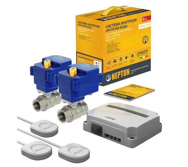 Neptun Bugatti Base - это лучшее соотношение цены и качества. Модуль управления Neptun Base - простое, но при этом очень надежное устройство. Дополнительных функций не много, но если они Вам и не нужны, то это идеальное решение. Главное, что в комплекте идут зарекомендовавшие себя шаровые краны Neptun Bugatti, которые едут напрямую с завода в Италии. У электропривода большое усилие (ломает карандаши), которое никогда не будет лишним с учетом не очень качественной водоподготовки в России, в кране используются самые лучшие уплотнительные материалы (первичный фторопласт, который выдерживает даже серную кислоту) и конечно же - есть ручное аварийное открывание на случай, если не будет питания или электроника выйдет из строя.