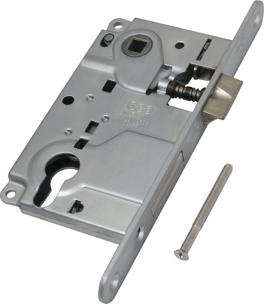 Замок межкомнатный под цилиндр в цвете никель с металическим язычком серии Centro. Защелка разработанна инженерами компании AGB и объединяет в себе надежность, качество используемых материалов, точность механических соединений и инновации. Все замки серии центро имеют один размер и взаимозаменяемы между собой.