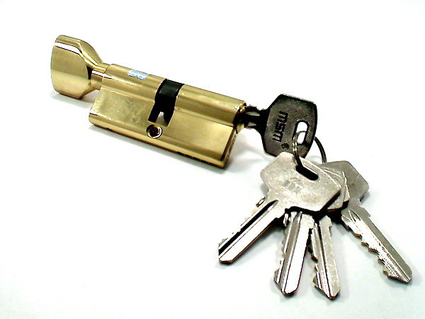 Цилиндровый механизм из ЦАМ с 5 английскими ключами. Ключи из стали. 5 пинов, цилиндр ключ-вертушка, размер 80мм (40*40).