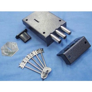 Замок накладной "KERBEROS" (имеет защиту от высверливания) Замок предназначен для запирания деревянных и металлических дверей зданий, квартир и гаражей. 5 ключей длинной 105мм.Упакованы в спец пакет! Замок устанавливается без переналадки на правые и левые двери.Количество комбинаций механизма секретности - 5 000 000 Максимальный вылет засова - 40 мм 3 засова диаметром - 16 мм Толщина двери на которую можно устанавливать замок - до 53 мм Габариты замка - 100х130х26 мм. Устанавливается без переналадки на левые и правые двери.