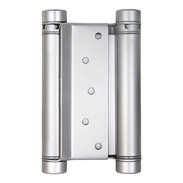 Петля двусторонняя (она же барная, пружинная, петля метро) применяется для деревянных дверей. Позволяет двери открываться в обе стороны, возвращает дверь в центральное положение (в створ).