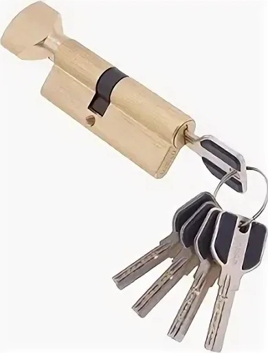 Латунный цииндр с 5-ю перфорированными ключами и поворотной вертушкой из латуни. Ключ и вертушка - полированная латунь. В закрытом состоянии поводок отклонен на 30 градусов, что обеспечивает дополнительную защиту от выбивания. Защита от высверливания. 7 пинов обеспечивают высокую секретность механизма.