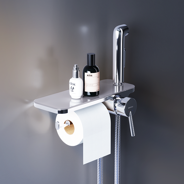 Современное решение для вашего удобства и гигиены теперь в новом исполнении: смеситель с гигиеническим душем отличается простотой и комфортом в использовании, а еще он выглядит невероятно стильно. Самое практичное гигиеническое решение: смеситель оснащен удобной полочкой, на которой поместится все, что необходимо под рукой, и держателем для туалетной бумаги. Смеситель с гигиеническим душем имеет компактный размер и монтируется непосредственно в стену, что помогает установить его даже в небольших санузлах. Смеситель оборудован ручкой-стиком, которая удобно ложится в руку и гарантирует комфортное использование гигиенического душа. Керамический картридж Light Flow обеспечивает плавное управление ручкой смесителя и оптимальную регулировку температуры и мощности потока. Характеристики