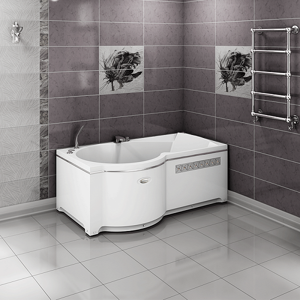 Одиночная асимметричная ванна с гидромассажем «Валенсия» сразу придает ванной комнате особый шик. При этом она очень удобна благодаря наличию встроенных гидромассажных форсунок и своей удачной форме. 11 форсунок для гидромассажа обеспечат по-настоящему эффективный и расслабляющий массаж водными струями. Нестандартная чаша ванны образует увеличенное пространство для комфортного принятия душа. При желании можно дополнить ее стенкой с радиальной шторкой, которая превратит изделие в ванну, совмещенную с душевой кабиной.