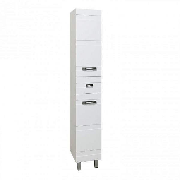 Пенал напольный с двумя фасадами и одним выдвижным ящиком посередине. Верхнее отделение - с распашной дверкой (петли справа) и внутренней полкой. Нижнее отделение - с откидной дверкой, за которой встроенная полка и корзина для белья. Петли со встроенным доводчиком, ящик - на шариковых направляющих полного выдвижения, ручки - 3шт, ножки хром - 2шт, ножки пластик - 2шт. Выпускается только в правом исполнении.