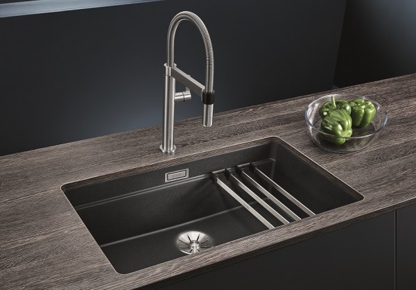 Подстольная кухонная мойка Blanco Etagon 700-U Silgranit PuraDur из композитного гранита. Конструкция с уступом внутри чаши дополнена инновационными держателями, которые удобно использовать в качестве подставки. Такая мойка станет полноценным моечным центром и стильным украшением современного хай-тек интерьера.