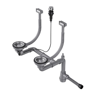 Арматура с клапаном-автоматом для двухчашевых моек с прямоугольными переливами, выпуск 3,5 дюйма.