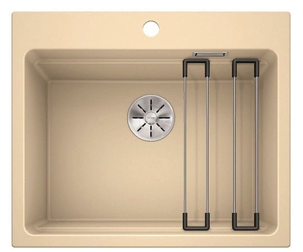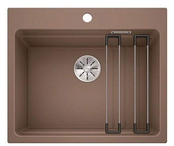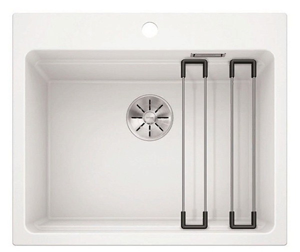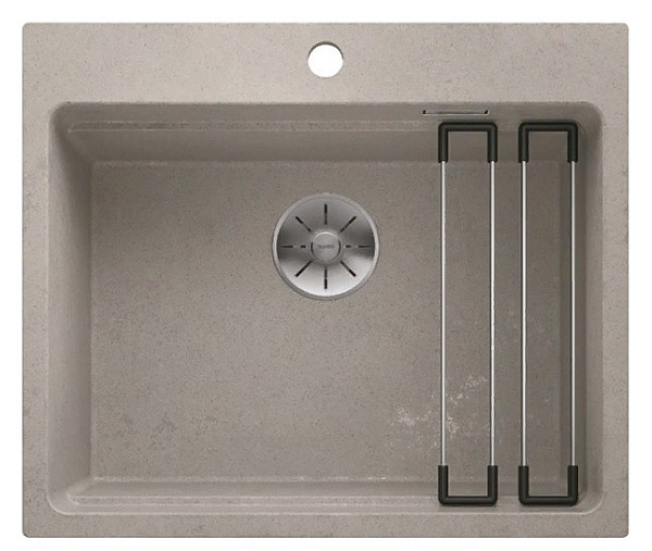 Кухонная мойка Blanco Etagon 6 Silgranit PuraDur со специально внедренным уступом и держателями внутри чаши. Многофункциональная модель представляет собой самостоятельный моечный центр с возможностью зафиксировать посуду поверх держателей, использовать их в качестве подставки. Таким образом можно размораживать мясо, остужать горячие кастрюли и многое другое.