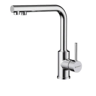 Современный однорычажный смеситель 3в1 позволяет переключить с водопроводной воды на фильтрованную в одно касание