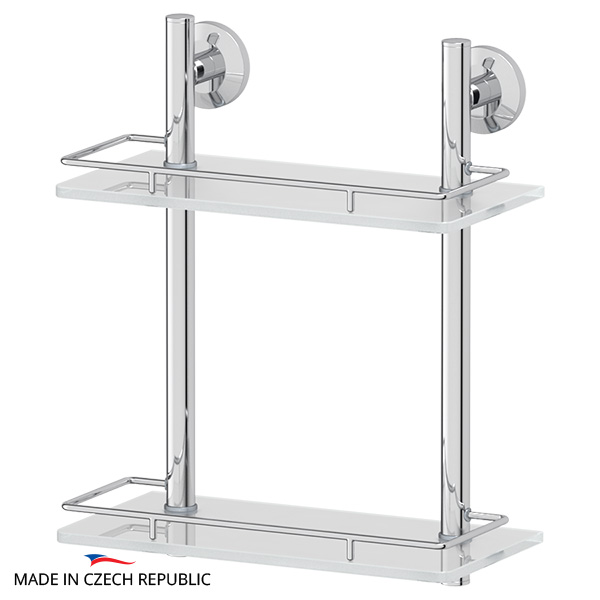 В современных ванных комнатах хранится множество предметов личной гигиены, средств уборки и т.п. Двухуровневые стеклянные полки позволяют разместить значительное количество этих предметов. Преимущество полок заключается в том, что они имеют всего два крепления к стене, которые удерживают массивную конструкцию. Таким образом, сверление в стенах сведено к минимуму. Коллекции насчитывают пять видов полок от 30 до 70 см, а также угловую и полукруглую полки. Такое разнообразие видов и размеров больше не представлено ни одним производителем, что является большим преимуществом чешских серий. Угловая полка «сглаживает» пространство и позволяет выгодно размещать предметы гигиены в ванной комнате. Полки оборудованы поднимающимся элегантным металлическим ограничителем, который снижает риск падения предметов с поверхности стеклянной полки и дает возможность легко ухаживать за стеклом. Стекло полки имеет марку «Clear Vision» производства завода «AGC» - мирового лидера в изготовлении стекла и зеркал. Стекло высокой чистоты