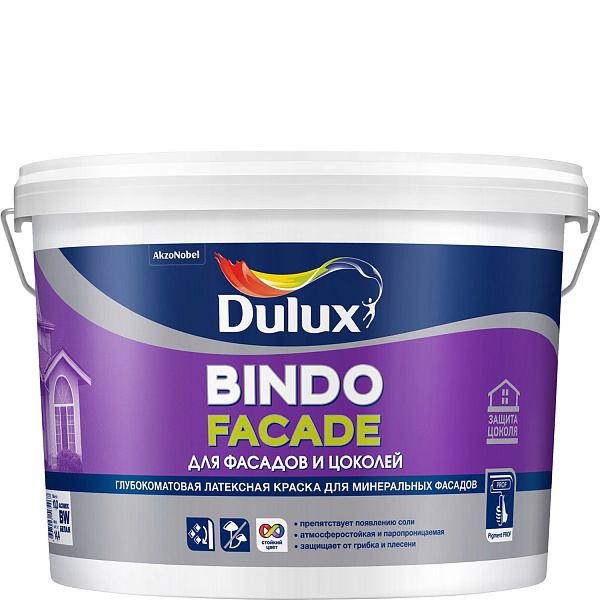 Латексная фасадная краска Dulux Bindo Facade создаёт атмосферостойкое и цветостойкое покрытие, которое сохранит красоту фасада на долгие годы! Обеспечивает надежную защиту фасада на срок до 10 лет! (подтверждено независимой лабораторией).