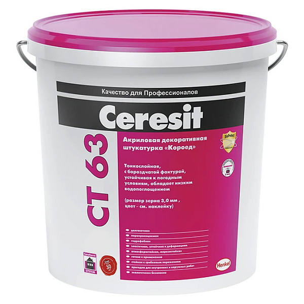 Штукатурка декоративная акриловая Ceresit СТ 63 короед 3 мм. база 25 кг